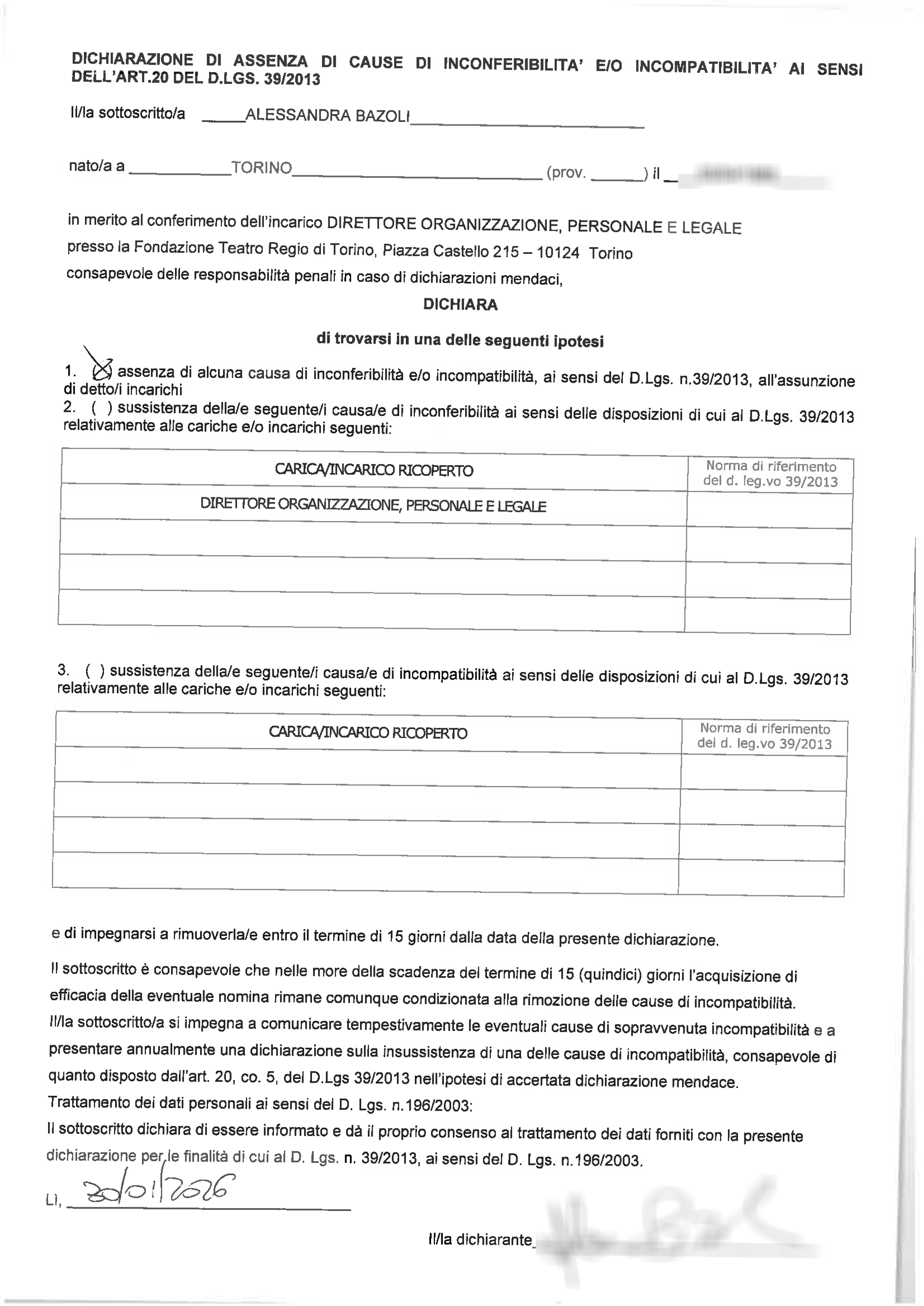 Curriculum vitae, Dichiarazione altre cariche, Dichiarazione ai sensi D.Lgs. 39-2013
